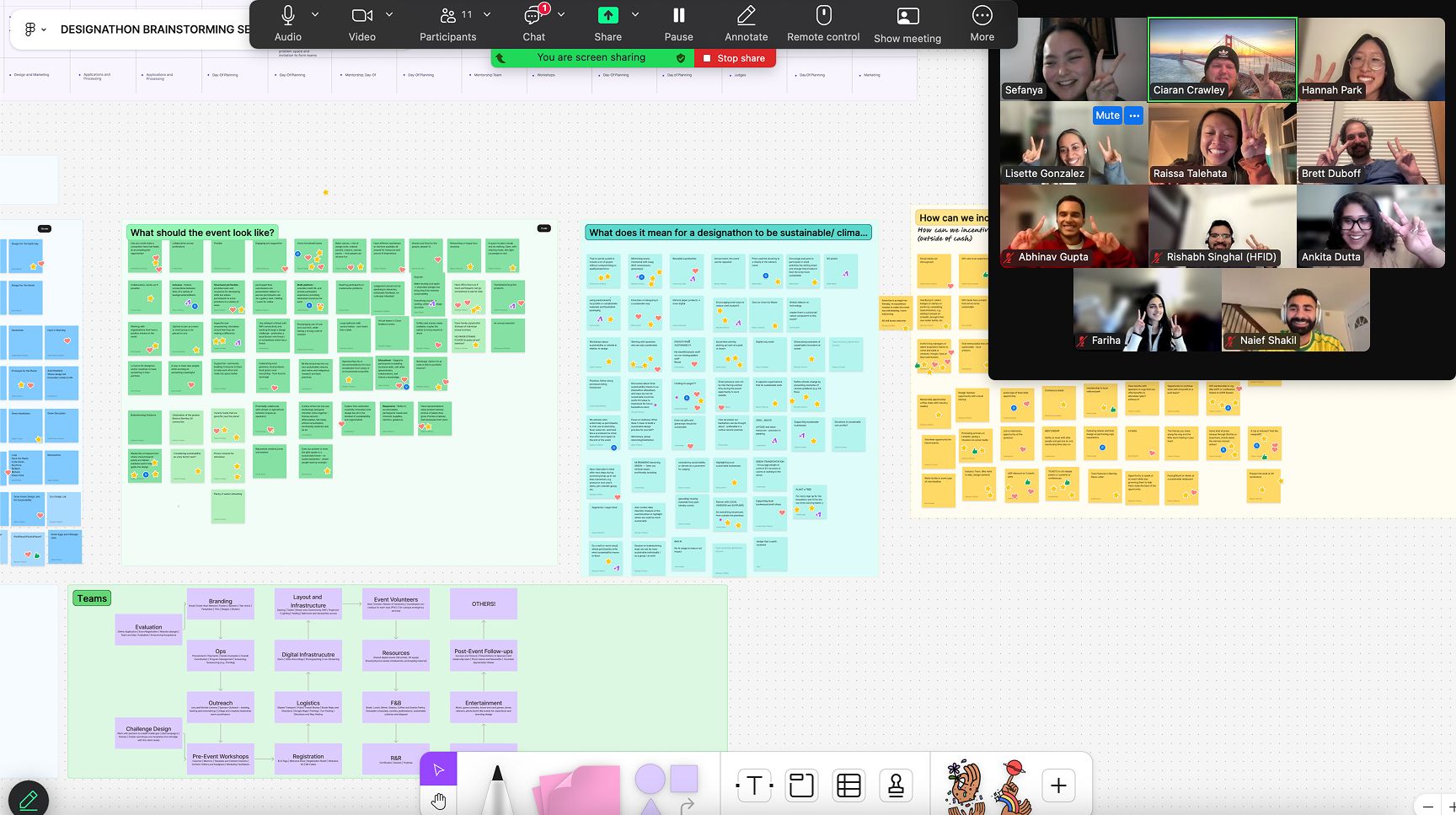 Once we had an understanding of the need we were solving for, who was designing, and where the event would take place, we brought in members of our communities to help frame the event. I designed a 90-minute visioning workshop where we answered questions about the designathon, including What should the event look like? And what does it mean for a designathon to be sustainable?, We even landed on the name Prototype for the Planet from this event.