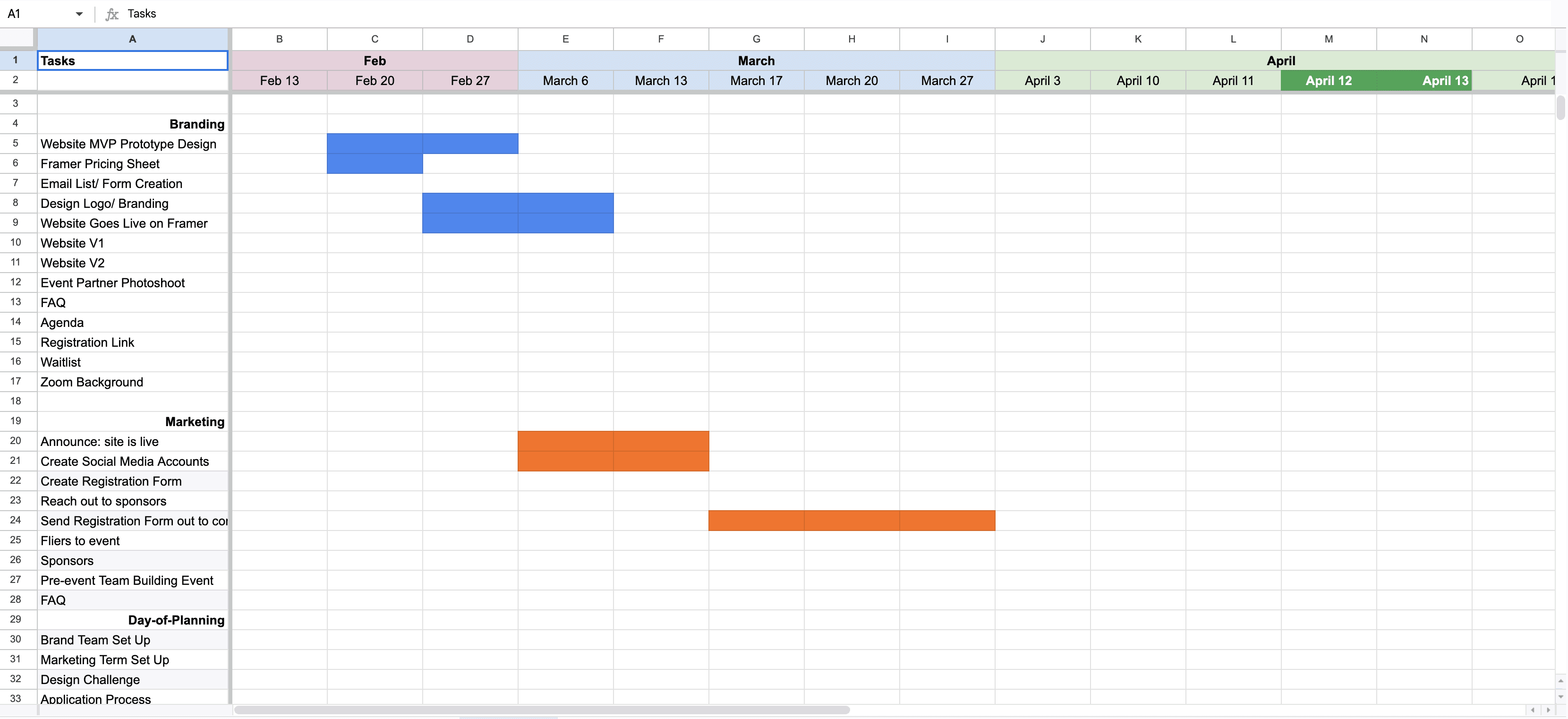 At the end of the workshop, we built out different teams to take over roles for the event. We divided up the different work needed and used a RACI Matrix to ensure all parties were informed of overlapping tasks and due dates.