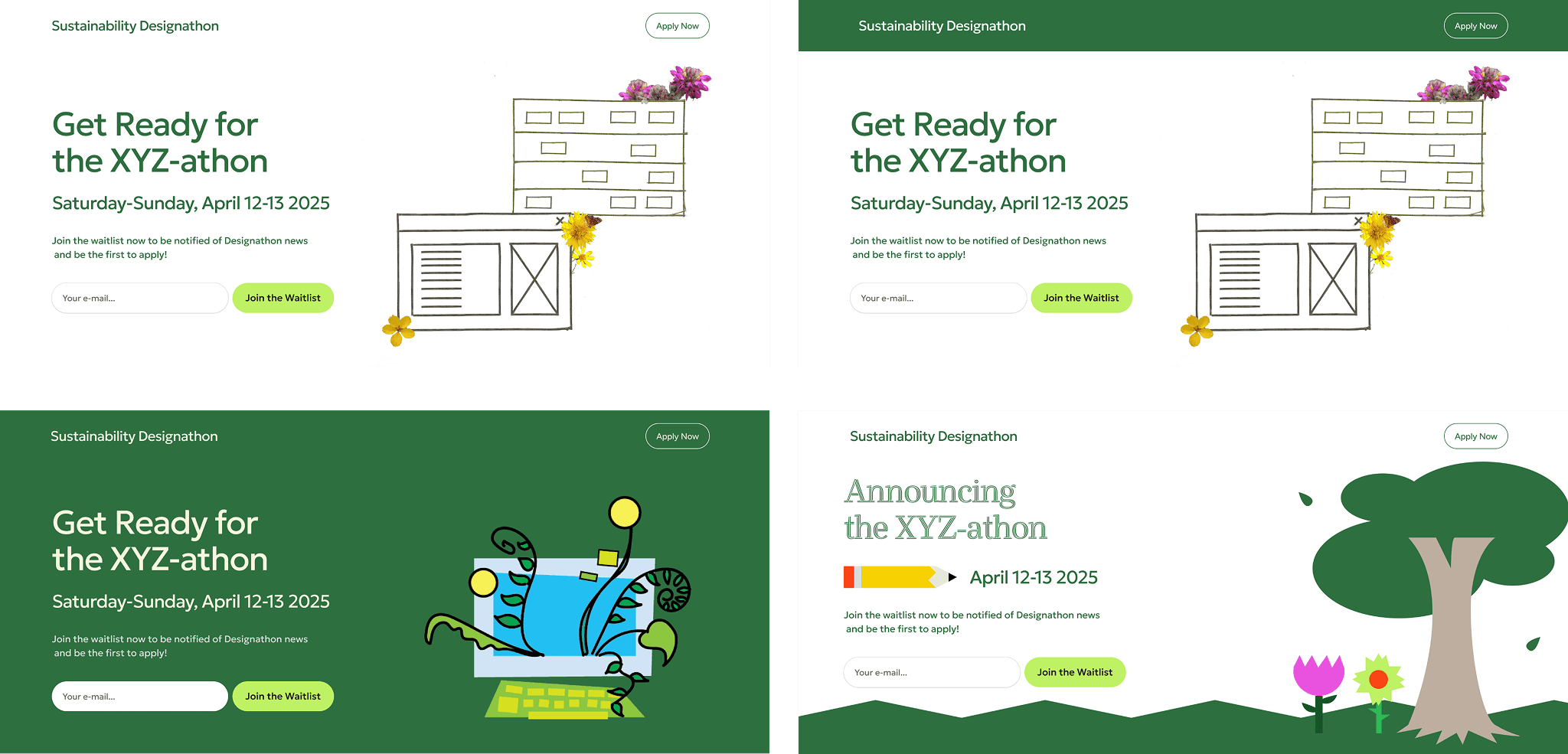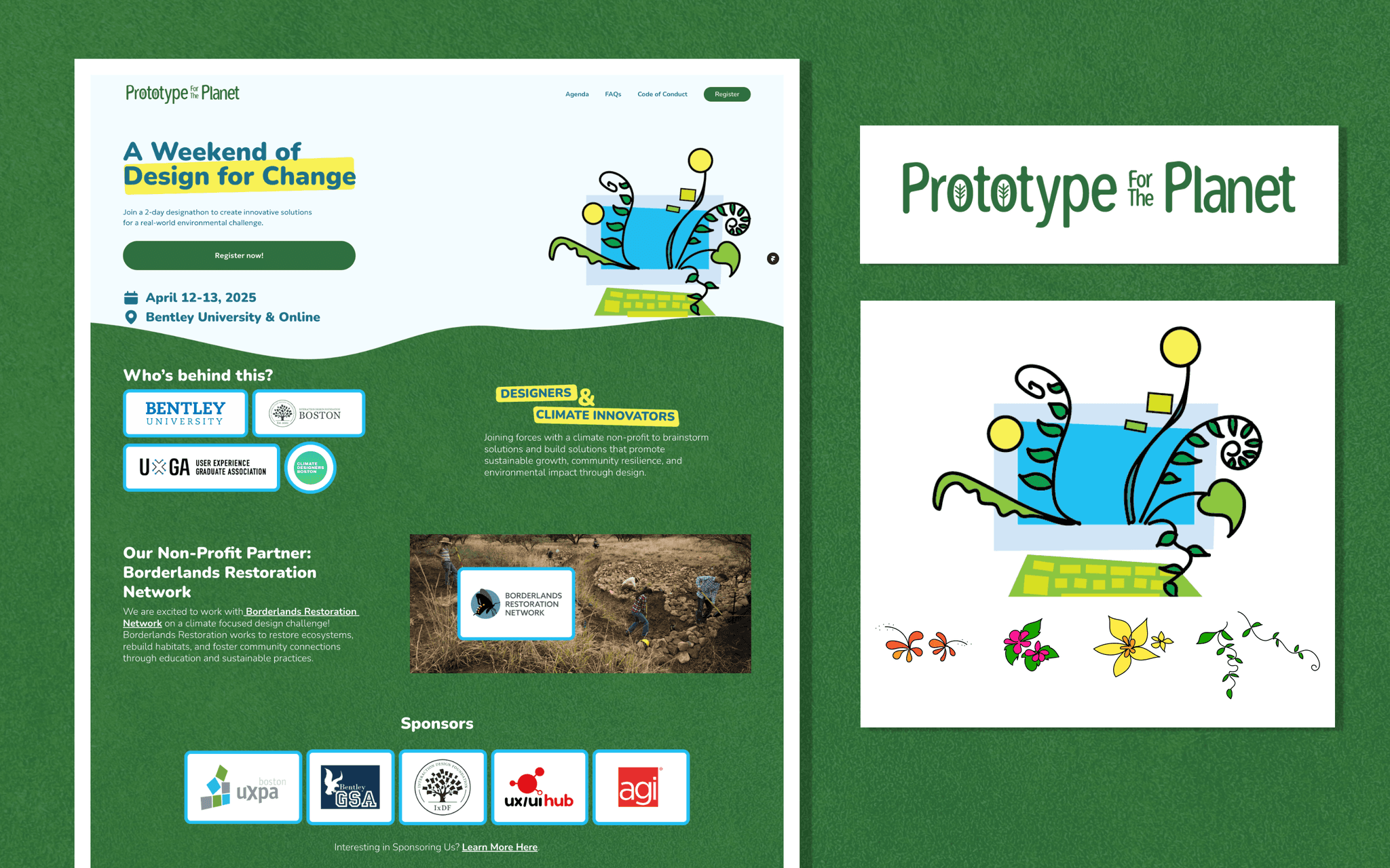 I helped the design team create the brand work for the event- overseeing design decisions and working with the team on directions. We landed on an organic feeling direction, using curved vectors and plant textures to go with a natural, "prototype-y" feel. The team worked quickly as we needed to have a minimum viable product in a couple weeks.